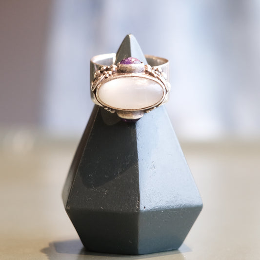 Moonstone + Amethyst Oval Sterling Silver Ring
