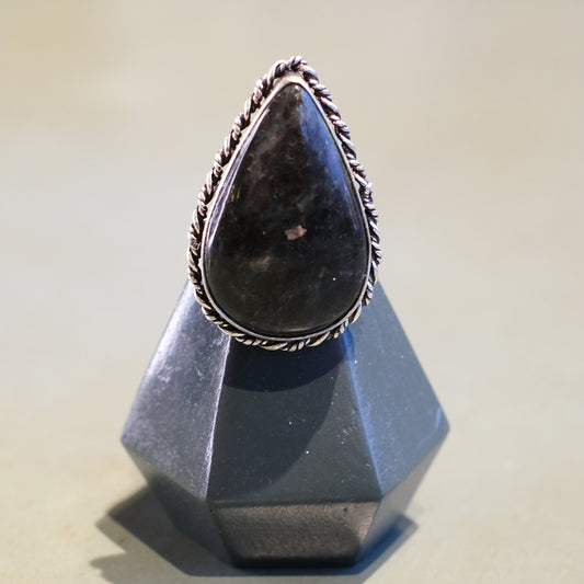 Asymmetrical Pear Shaped Rainforest Jasper Sterling Silver Ring