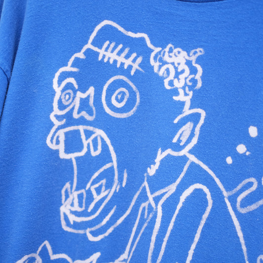 hand drawn zombie t-shirt - bright blue L