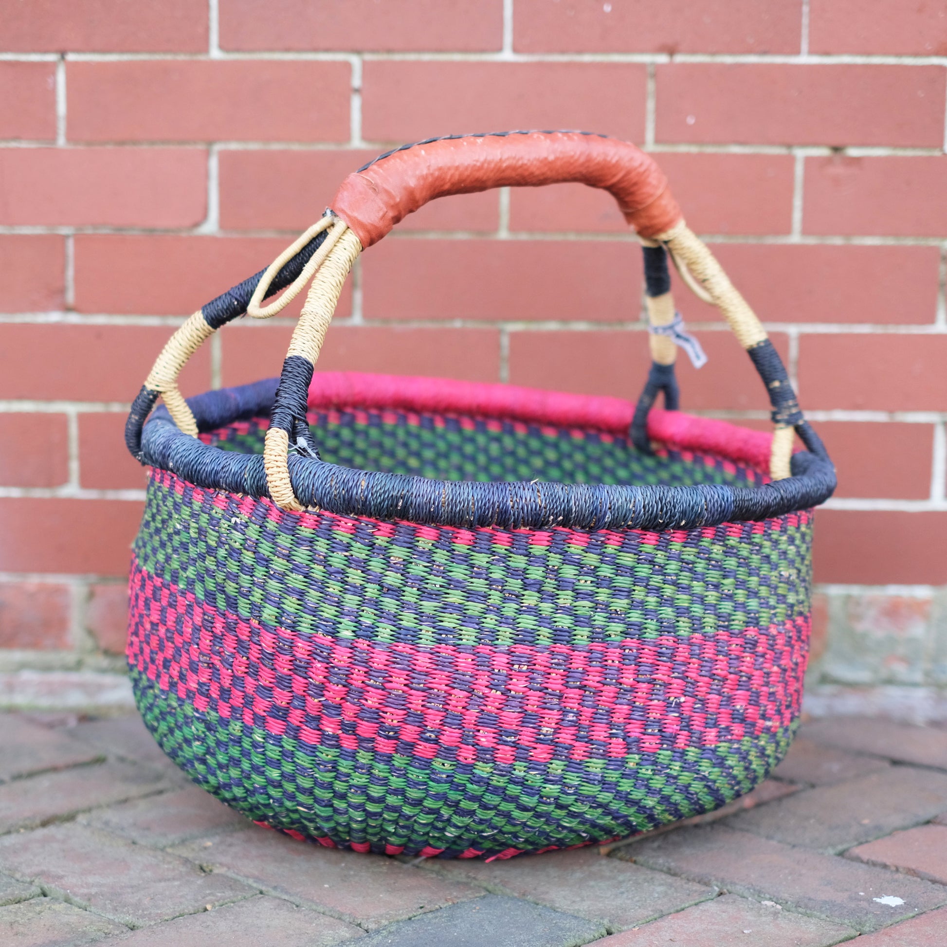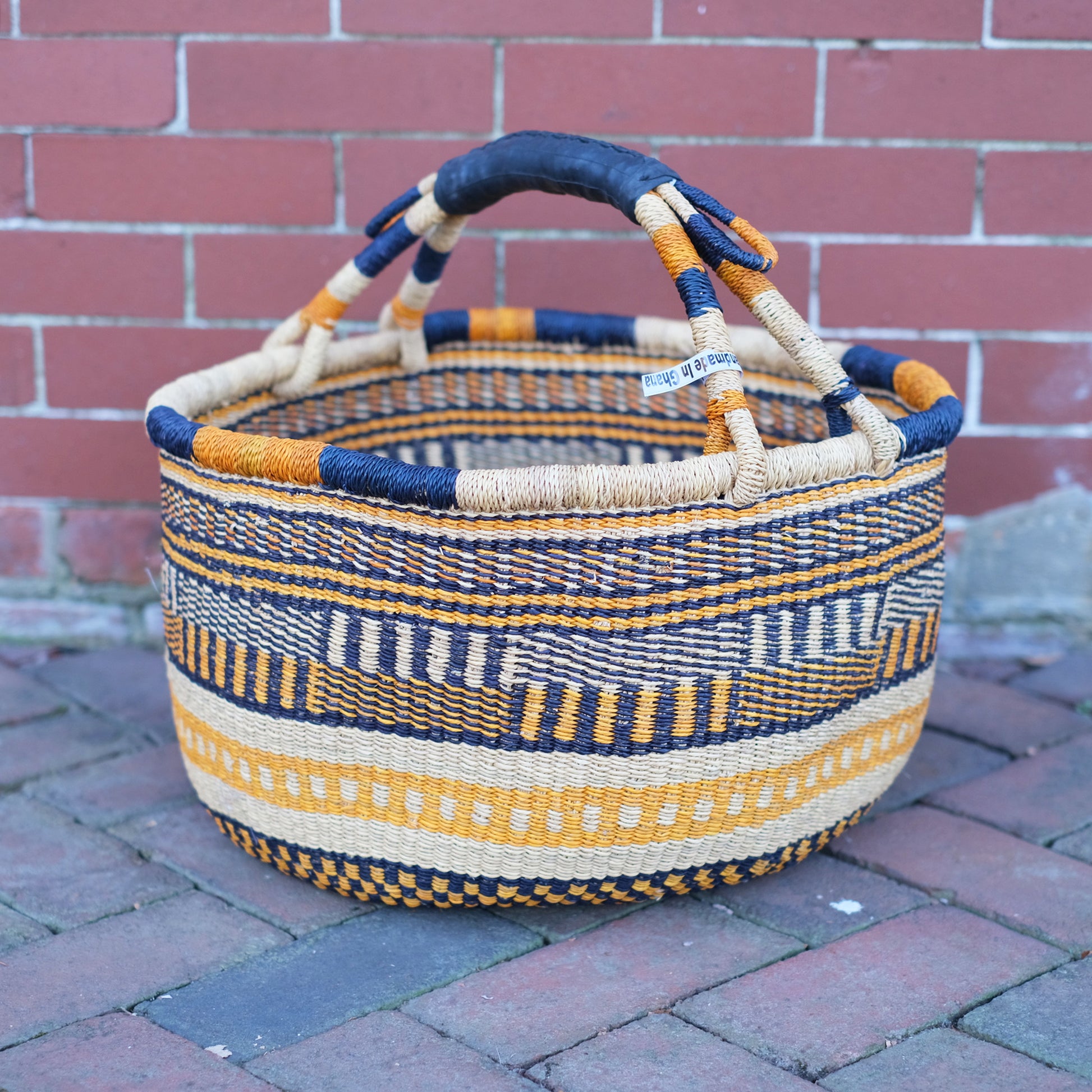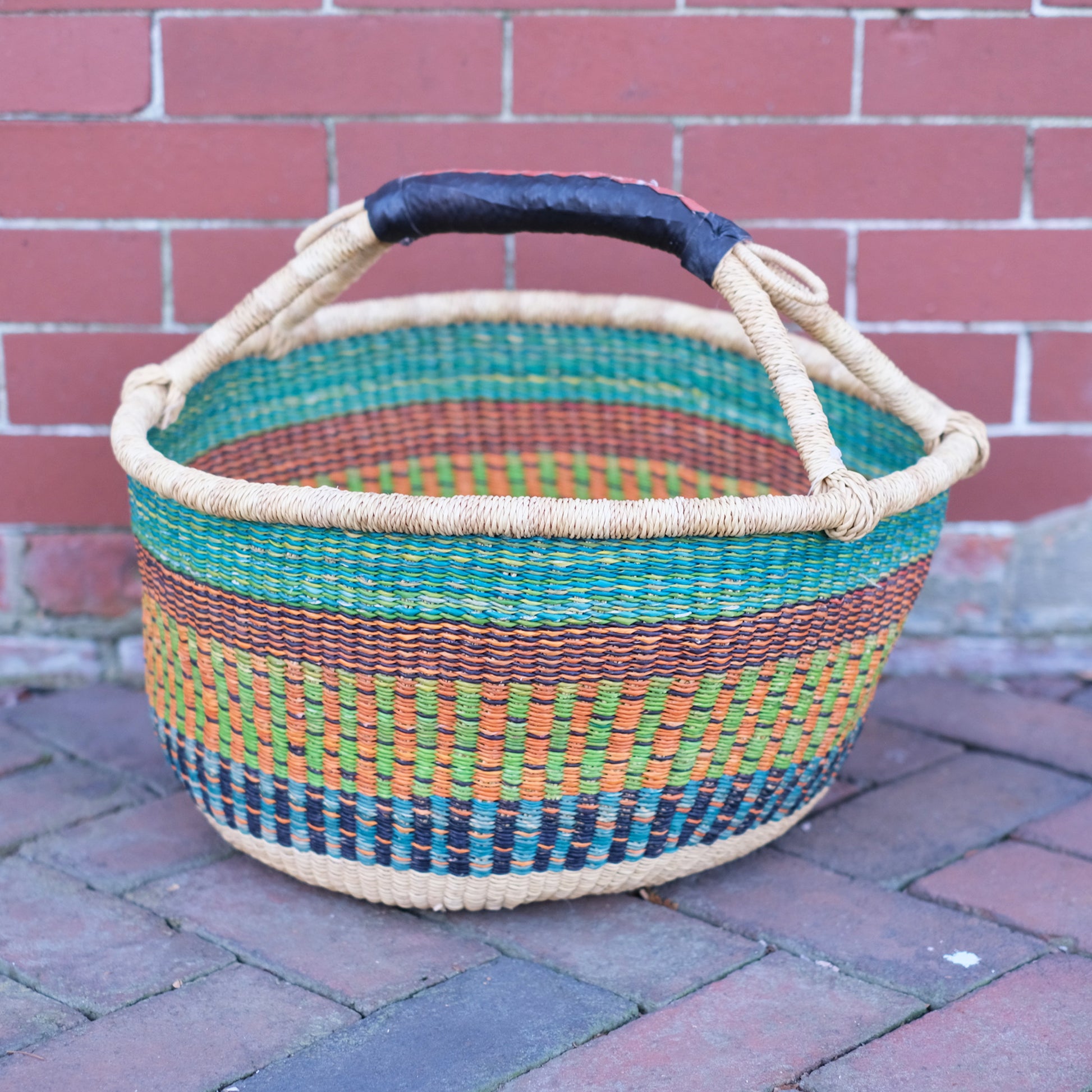 African Market Baskets™ are strong, durable, colorful and hand-made. Each basket is unique and beautiful. They are made from river grass, known as “elephant grass” by local weavers in Bolgatanga, Ghana.
