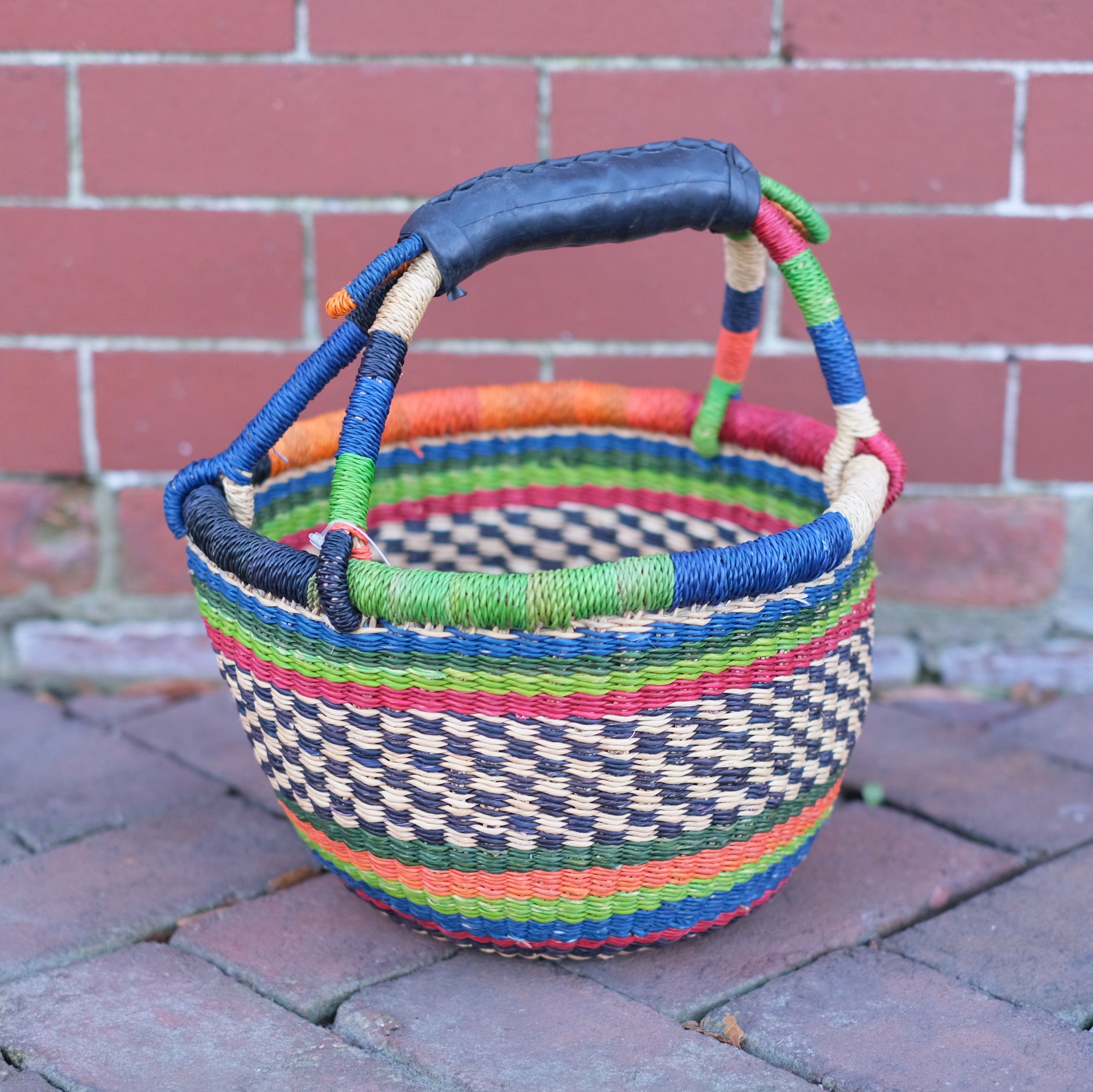 African Market Baskets™ are strong, durable, colorful and hand-made. Each basket is unique and beautiful. They are made from river grass, known as “elephant grass” by local weavers in Bolgatanga, Ghana.